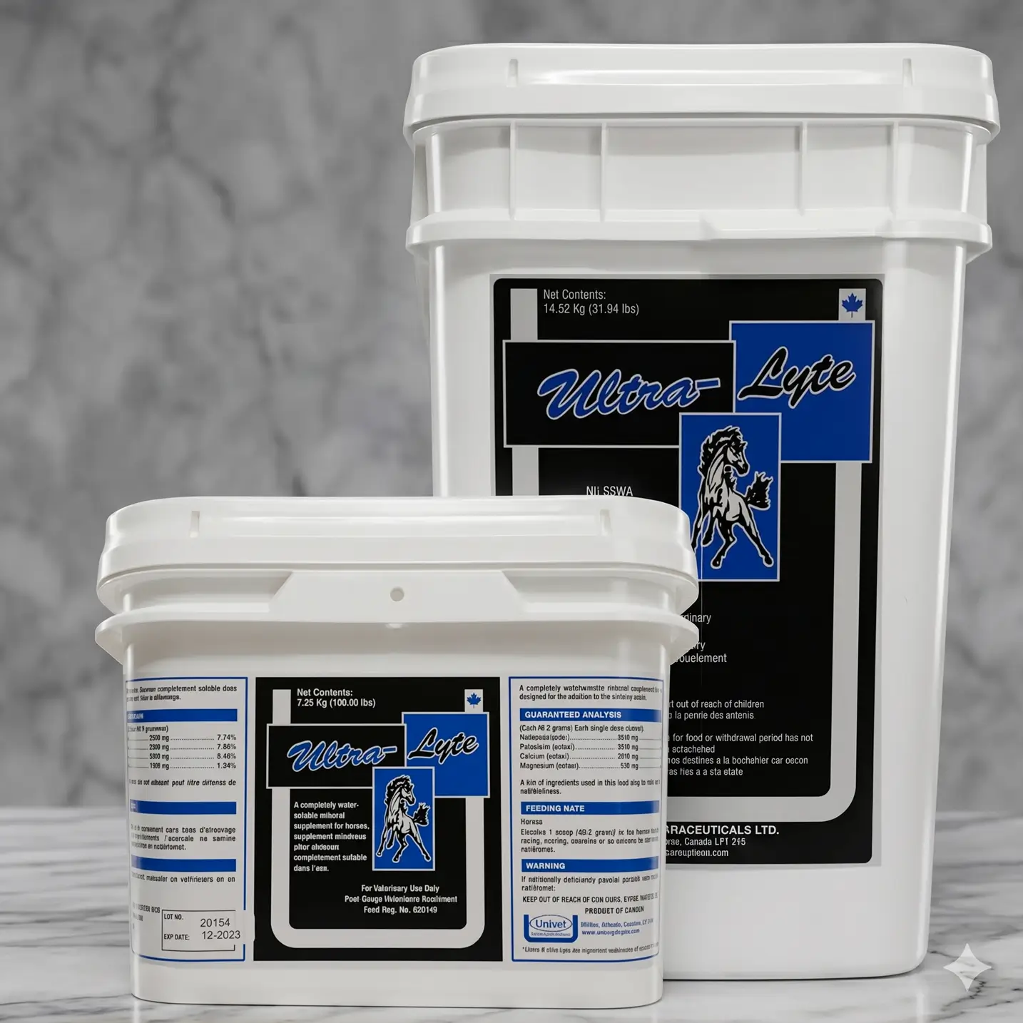 ULTRA-LYTE is a completely water-soluble mineral supplement for horses.